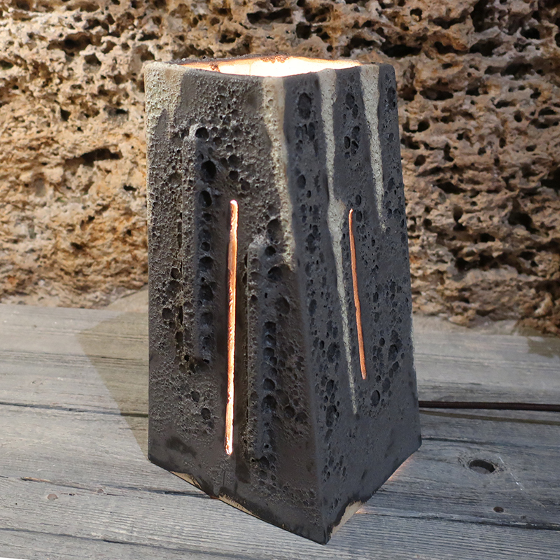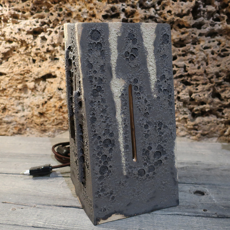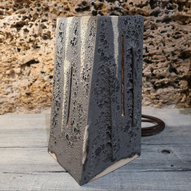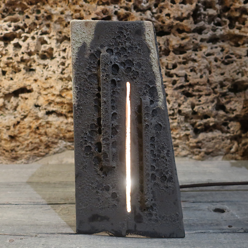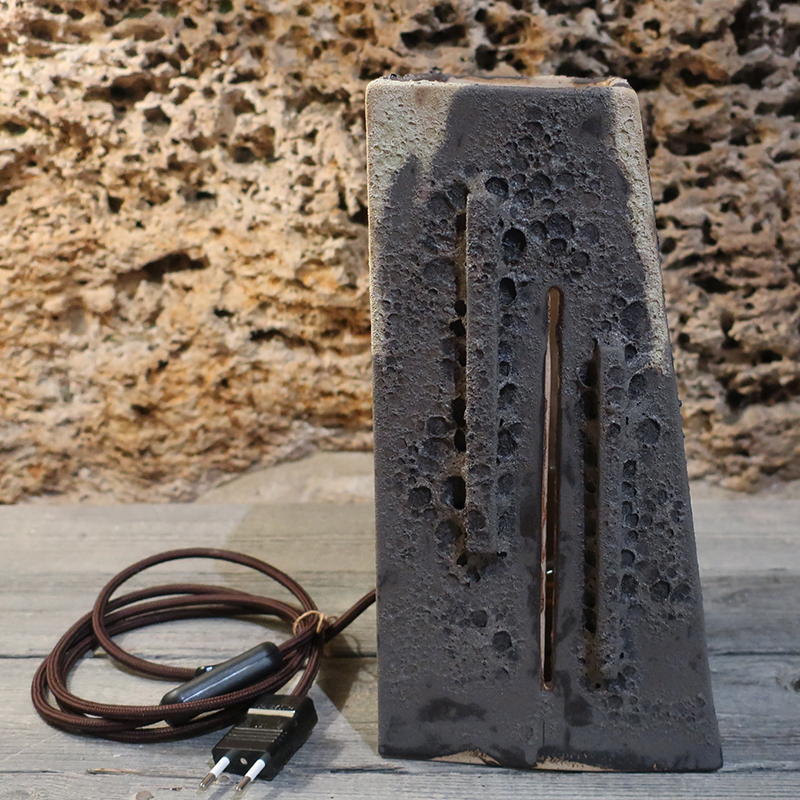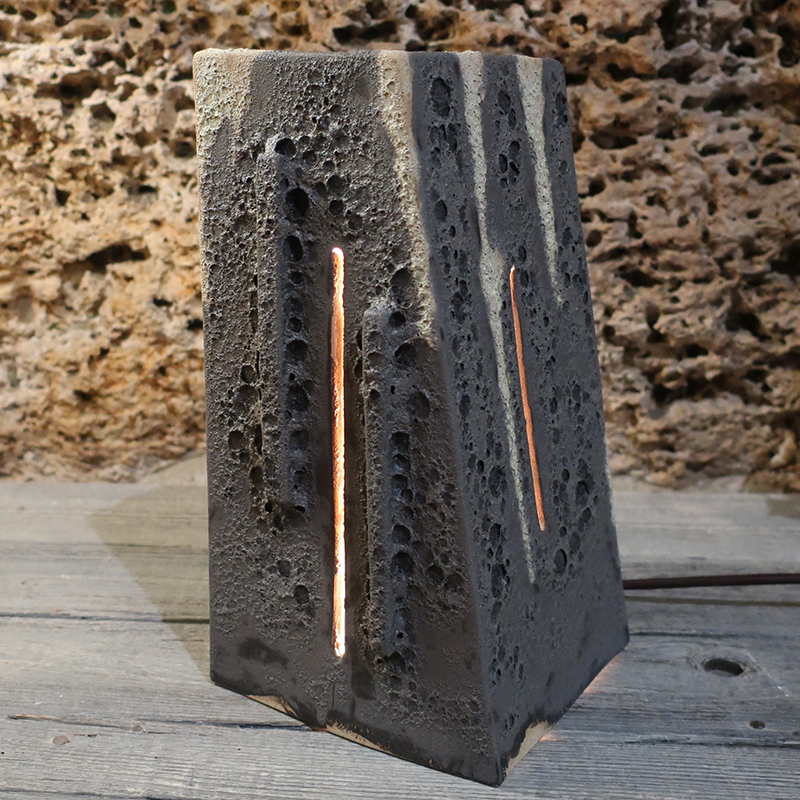 Scultura con luce in gres. Lampada artistica per luce da atmosfera. Realizzata interamente a mano. Artigianato artistico toscano. Pezzo unico
