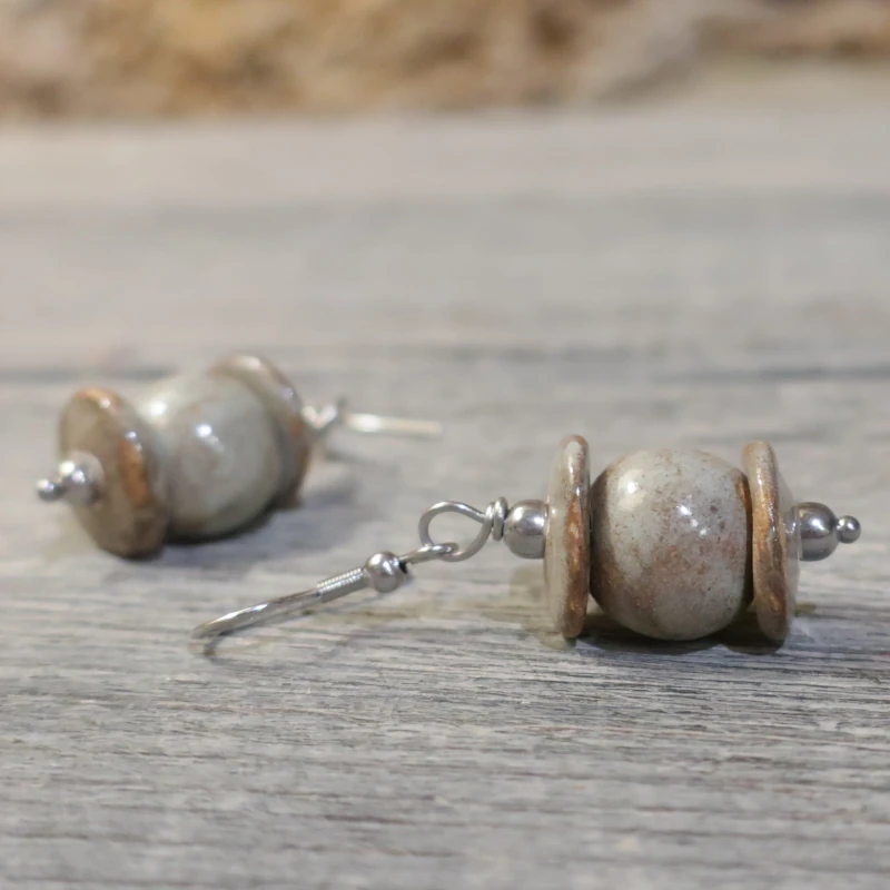 Orecchini a pendente in ceramica, montati su acciaio nichel free. Ceramiche da indossare: gioielli fatti a mano in ceramica